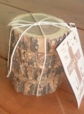 The bark coasters come in two sizes. The larger coasters are great for candles and the smaller coasters are great for drinks. Both are made with locust and accented with the bark.